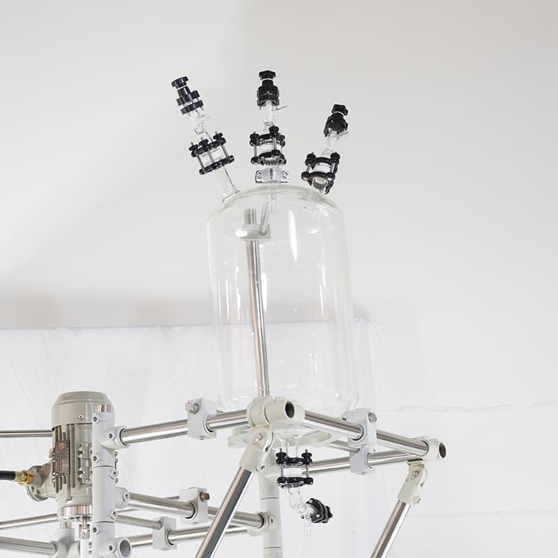 100L double jacketed glass reactor is designed for precise batch reactions under controlled temperature conditions. The integrated 5L buffer tank ensures stable feeding and smooth pressure balance during operation.