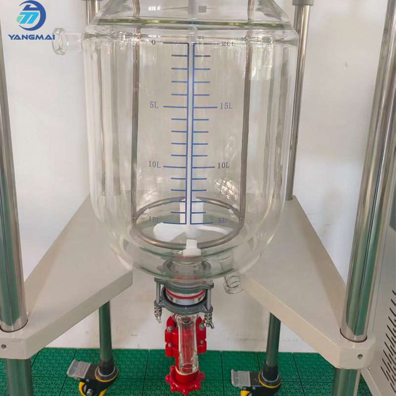 Hefei YangMai Technology Instrument Co., Ltd. offers 20L Double-Layer Glass Reactor precise chemical synthesis, heating, and mixing applications. Built with high borosilicate glass 3.3, it offers excellent thermal stability and chemical resistance. The double-layer jacket allows accurate temperature control for reactions such as distillation, crystallization, and polymerization. Its compact design and smooth stirring system ensure efficient operation for laboratory or pilot-scale production. Ideal for chemical, pharmaceutical, and research applications requiring controlled reaction environments.