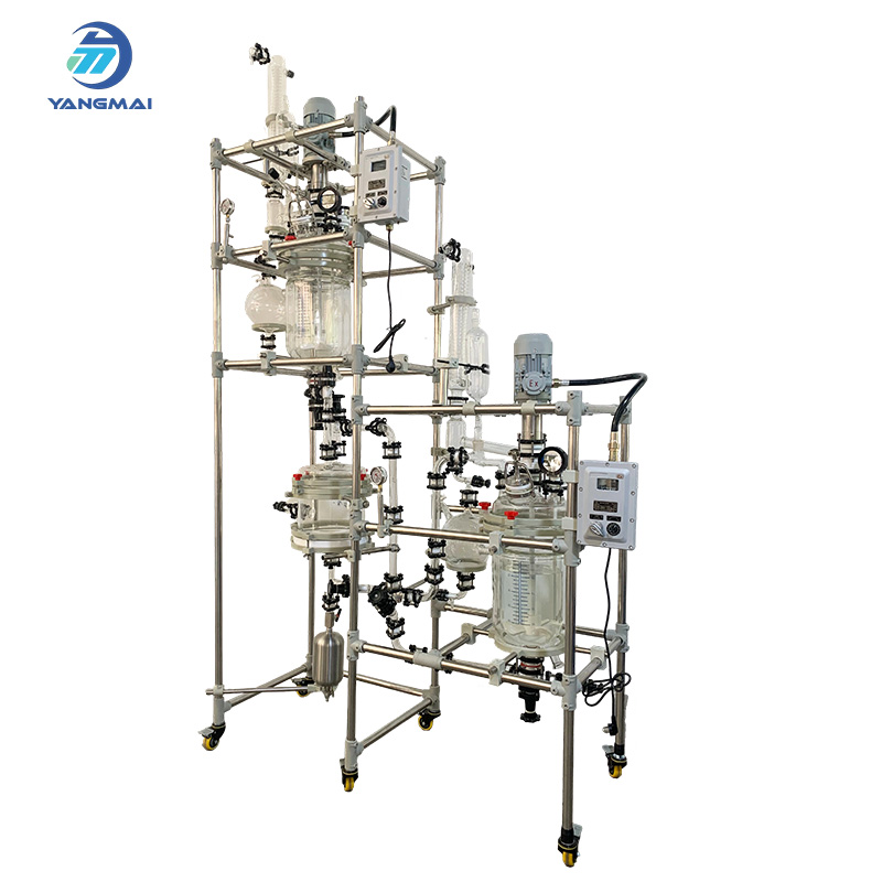 The 10L Customized Jacketed Glass Reactor from Hefei Yangmai Technology Instrument Co., Ltd. is engineered for chemical synthesis, crystallization, and solvent-based reactions requiring accurate thermal control. Paired with a 5L buffer tank, the system enables continuous or stepwise material feeding while maintaining stable reaction pressure and flow, improving process consistency and safety.